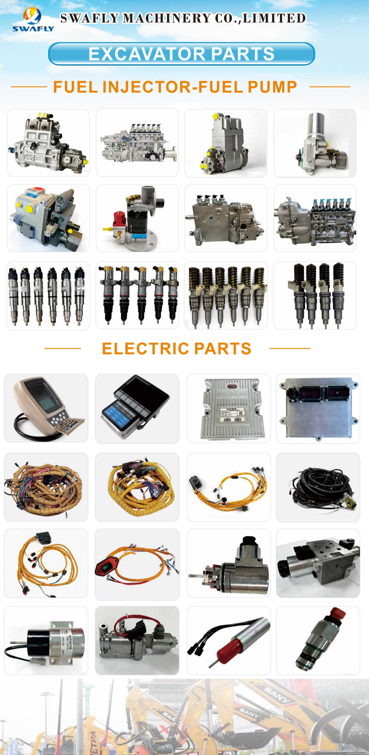Gehitze berriek bi kategoria hartzen dituzte batez ere. Erregai-sistemaren atalean, Swafly-k orain, Caterpillar, Komatsu, Hitachi, Hyundai eta Volvo bezalako hondeamakinen marka ezagunetarako egokiak diren injekzio-ponpa eta erregai-injektoreen aukeraketa askoz zabalagoa eskaintzen du. Lineako ponpak, banatzaile ponpak edo common rail injektoreak izan, bezeroek unitate bakarrak edo multzo osoak (6 edo 8 injektore) eskura ditzakete zuzenean stocketik.